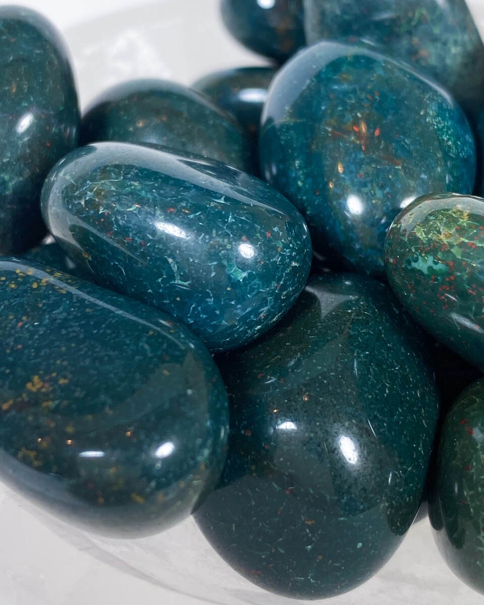 Bloodstone, also known as Heliotrope, is a dark green variety of chalcedony or jasper-like quartz with natural red inclusions, traditionally linked to iron-rich minerals such as hematite. In crystal healing, I work with Bloodstone as a grounding and cleansing stone. It is often used for courage, stamina, energetic protection, and helping the body feel less depleted. I especially love it when energy feels stagnant, when the lower chakras feel out of sync, or when I need support bringing the heart back into relationship with the rest of the body. It has a strong, earthy intelligence to it.