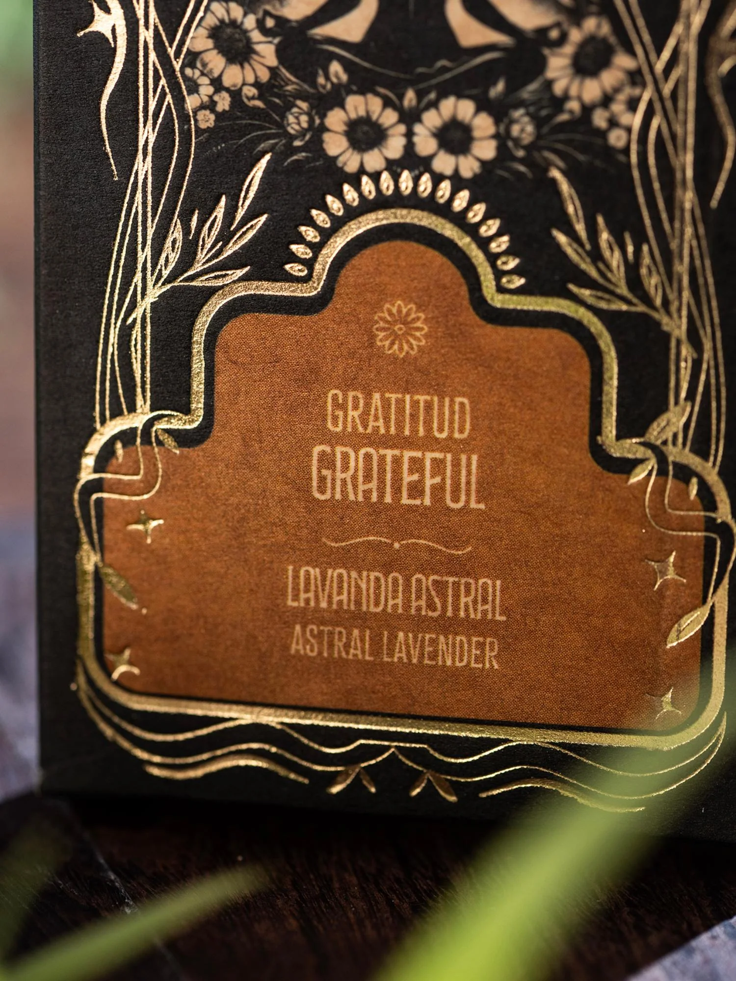 Blended with calming Patagonian astral lavender and sacred African olibanum (frankincense), this incense creates a prosperous atmosphere. Lavender soothes the nervous system and settles the mind so gratitude can be felt. Olibanum lifts the energetic field, connects you to something larger, and carries your thanks outward like a prayer made of smoke.