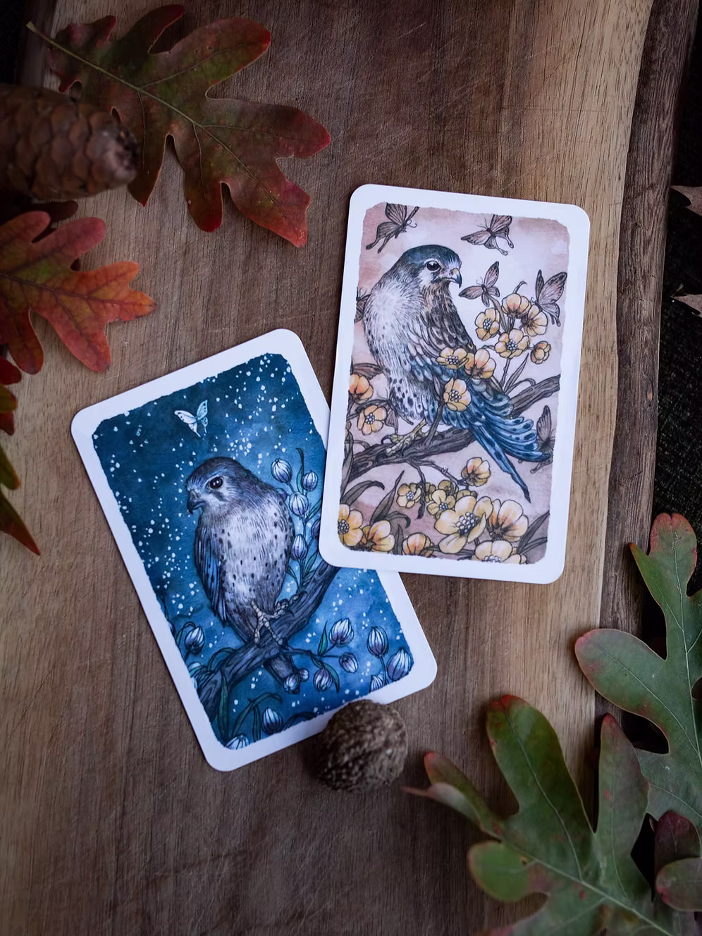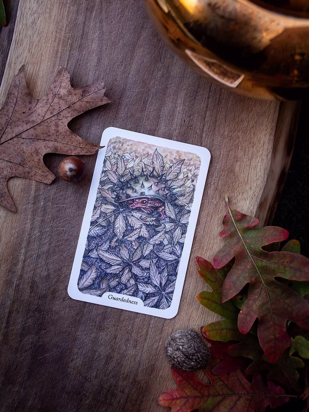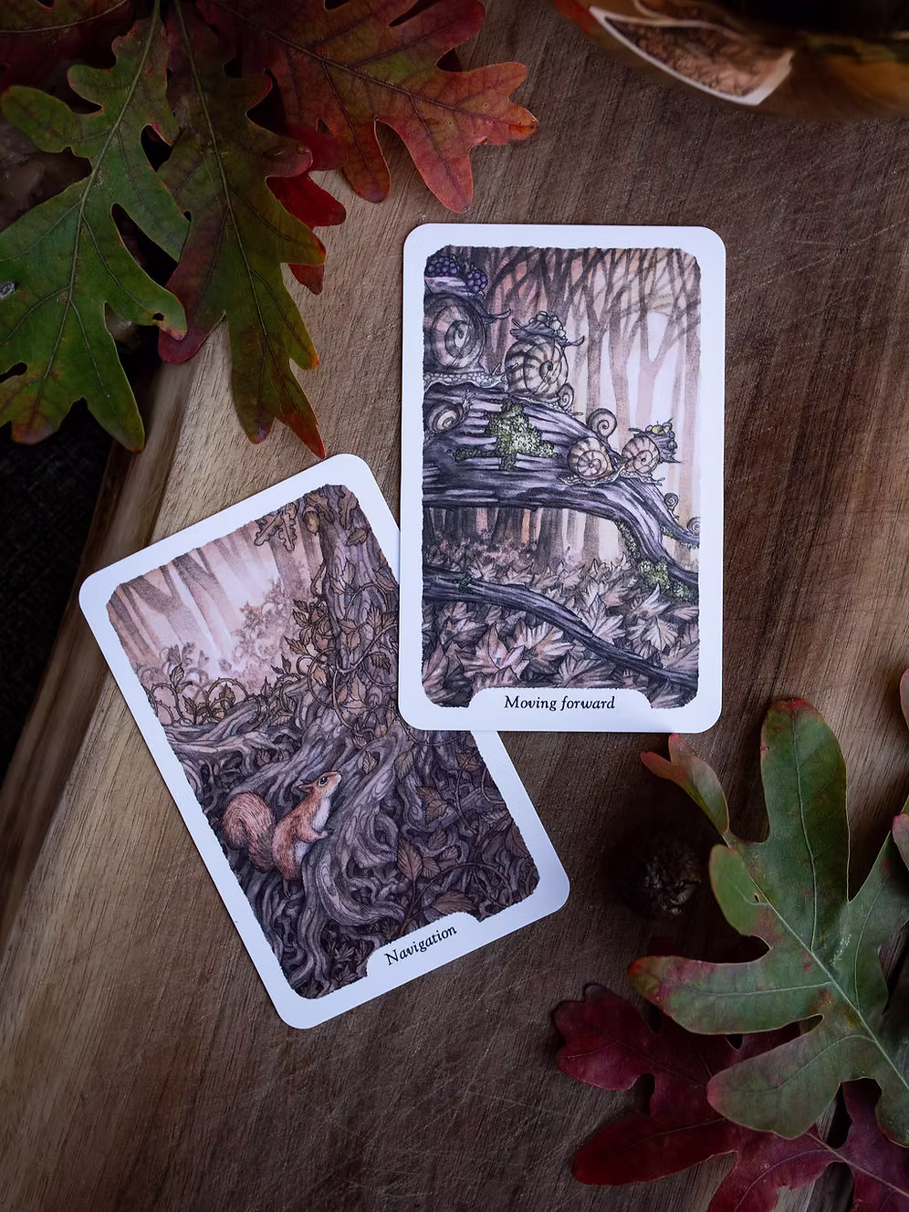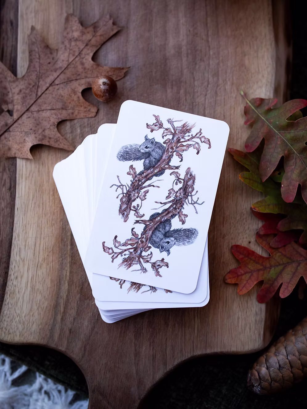 - Card Backs: Clothed in earthly tones of browns, oranges, and blues, the card backs feature a tranquil fox, resting peacefully among thistles, evoking a sense of harmony and tranquility.
